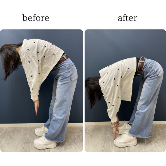 股関節前面、側面の組織間の滑走性を改善することによって前屈可動域を獲得した。