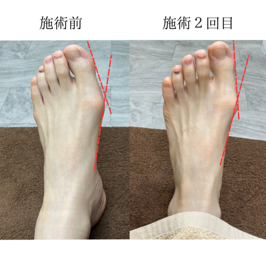 テーピングによって母趾を内側に引っ張ったり、足裏のアーチを補助したりすることが期待できます。