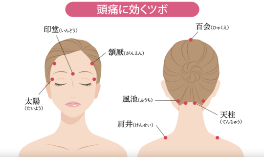 【ツボ】 天柱、完骨、和髎(わりょう)、陽白