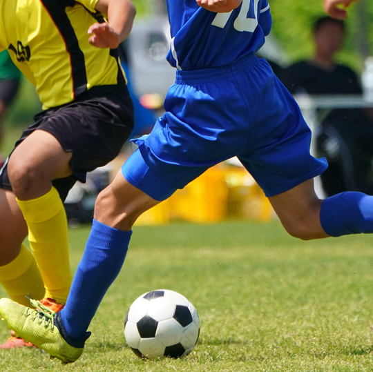 サッカーなど急激な方向転換やバスケットボールなど反復的なジャンプ動作で、大腿四頭筋(もも前の筋肉)が硬くなり、牽引力により脛骨粗面を引っ張り炎症してしまいます。